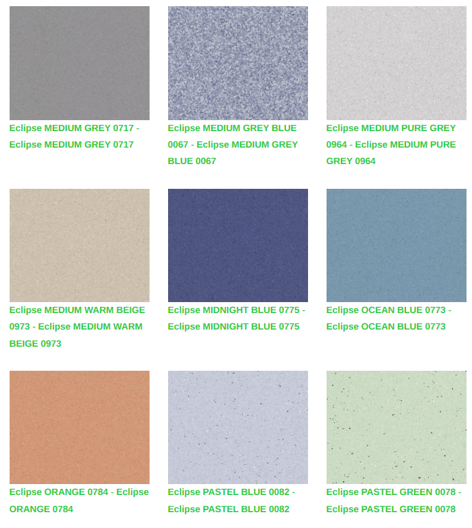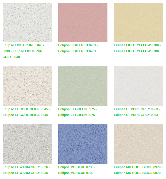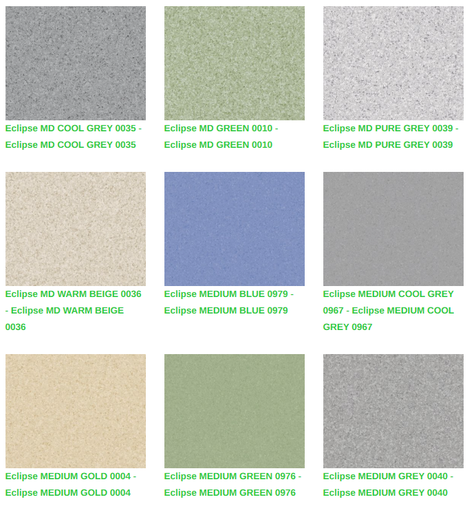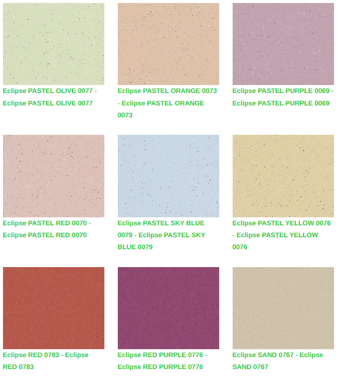 Eclipse Premium homojen vinil zeminler, eğitim ve sağlık tesisleri gibi yoğun trafikli alan uygulamaları için kalite, fonksiyonel ihtiyaçlar ve düşük bakım maliyetlerini bir araya getirir. Tescilli XR yüzey işlemimiz, gelişmiş koruma ve daha kolay bakım yapılmasını garanti eder. Eclipse Premium, Premium çok çözümlü ailesinin diğer ürünleri ve aksesuarları ile koordine edilen yeni Spectra serisi ile 66 çekici renkten oluşan doğrusal olmayan desen paletinde mevcuttur