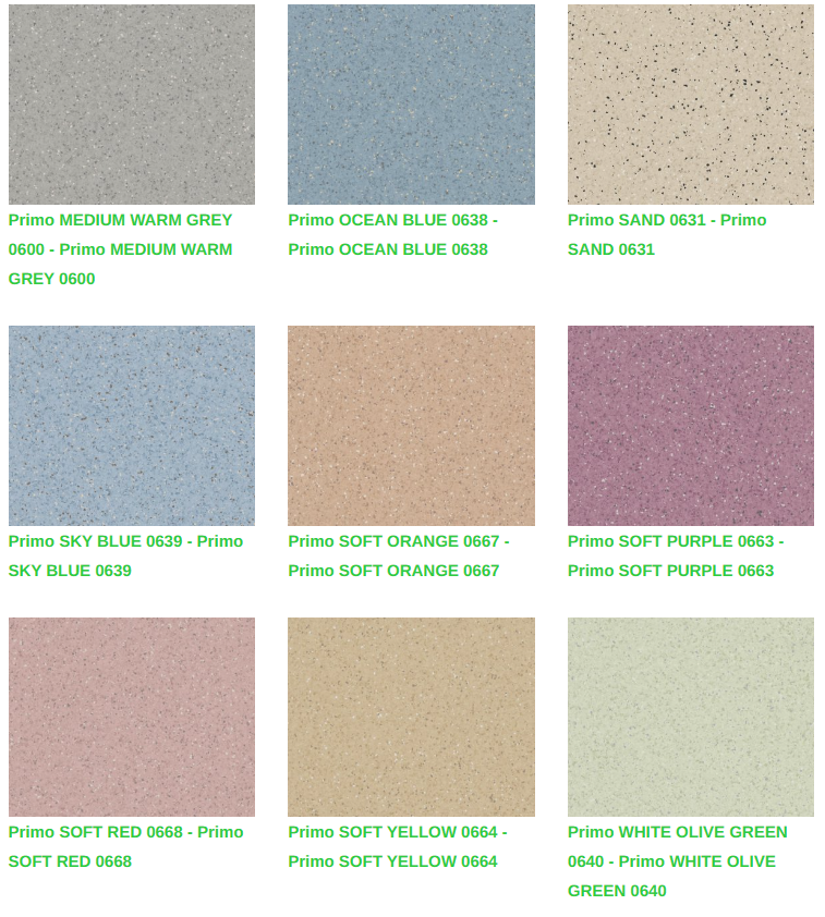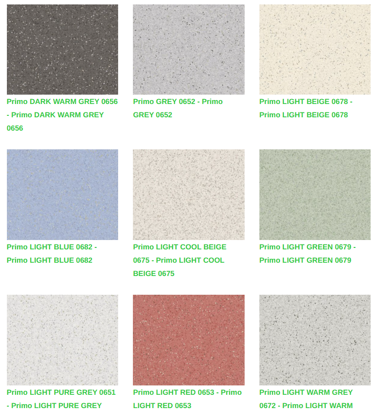 Eğitim ve sağlık tesisleri gibi yoğun trafikli uygulamalar için tasarlanan Primo Premium, hijyen ve dayanıklılığın önemli olduğu alanlar için homojen bir vinil zemin kaplama çözümüdür. Ticari markalı XR yüzey korumamız, gelişmiş koruma ve daha kolay bakım yapılmasını garanti eder. Primo Premium, geniş renk çipleriyle doğrusal olmayan bir desende Premium çok çözümlü ailesinin aksesuarları ve diğer ürünleri ile uyumlu renklerde mevcuttur.